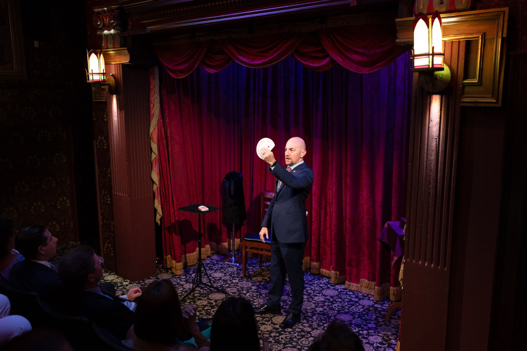Want to offer your guests something truly special? Invite them to an elegant sit-down magic show in the comfort of your private residence or venue. Perfect for groups of up to 40, this structured 20–90 minute performance blends sleight of hand, storytelling, and audience participation for a sophisticated after-dinner experience they’ll rave about.